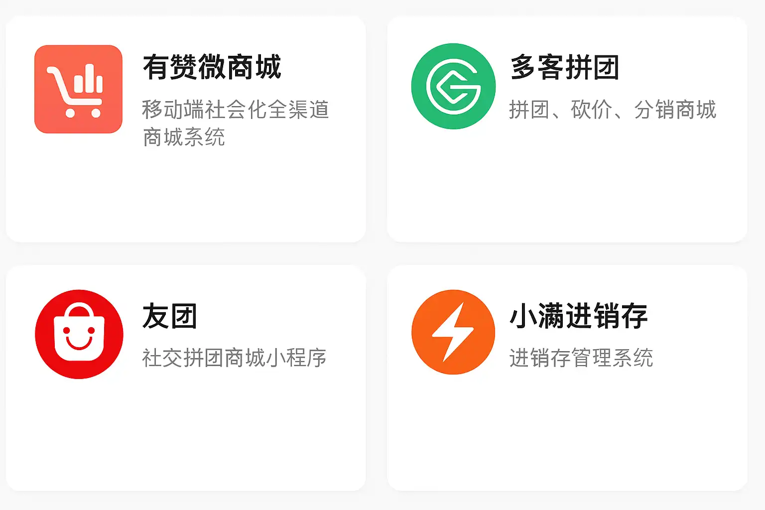 目前市面上支持带进销存功能的拼团小程序主要有以下几款:
