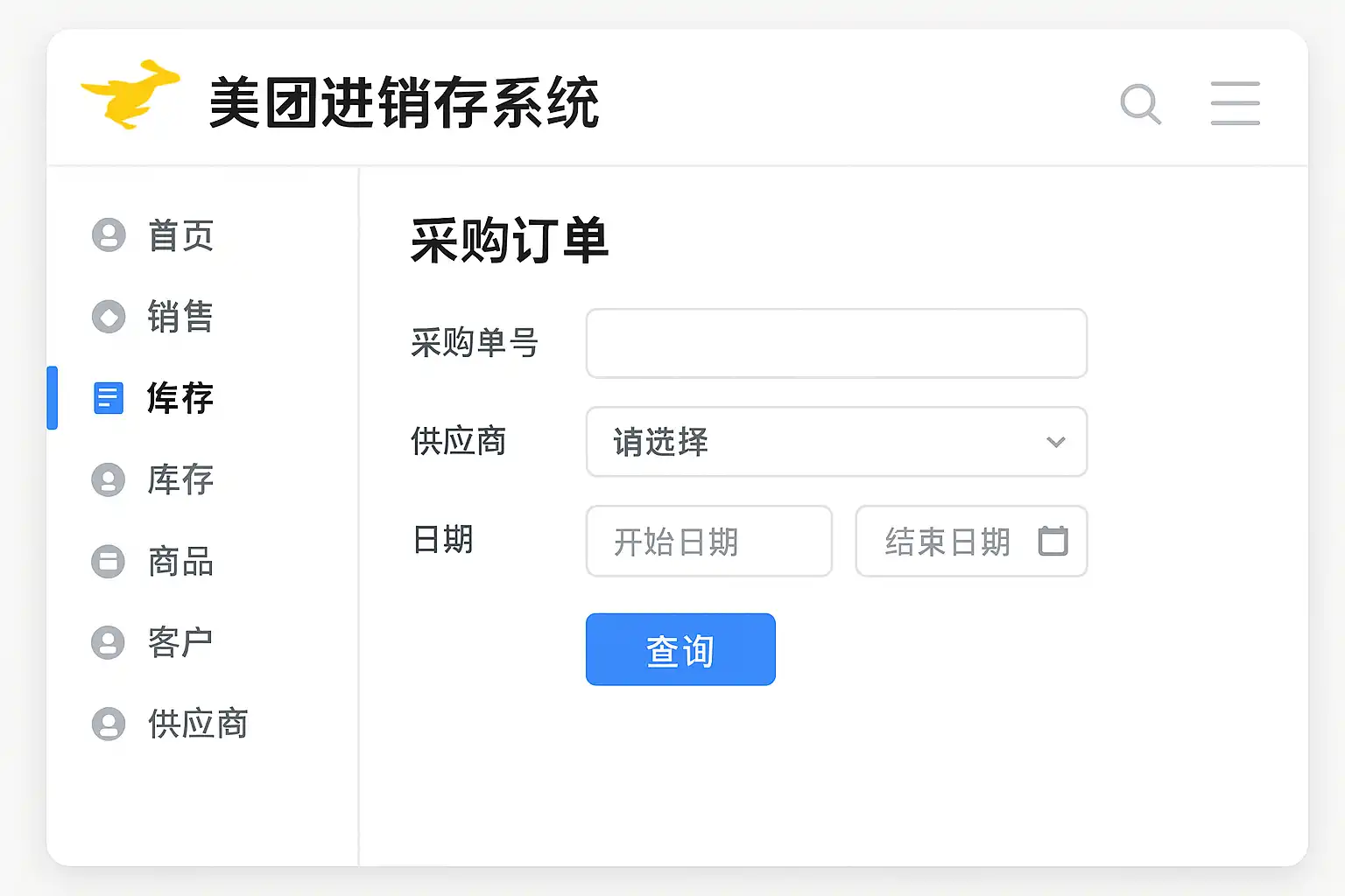 - 美团自带的进销存功能,一般嵌入在“经营工具”或“商品管理”等菜单中。用户登录【美团商家中心】后,可根据自己的行业类型(如餐饮、零售)在相应模块找到【库存管理】、“采购单”、“销售记录”等子菜单。
