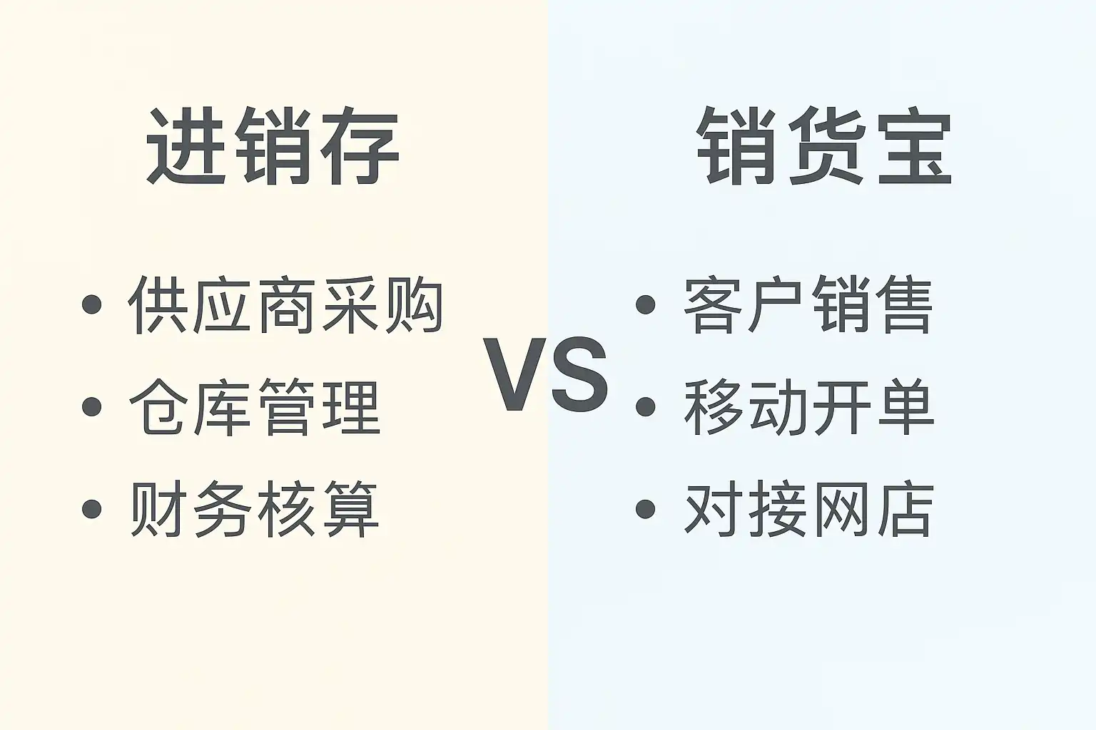 我在选择管理软件时听说过进销存和销货宝两种工具,但不太清楚它们的核心区别是什么?它们分别适合什么样的业务需求?