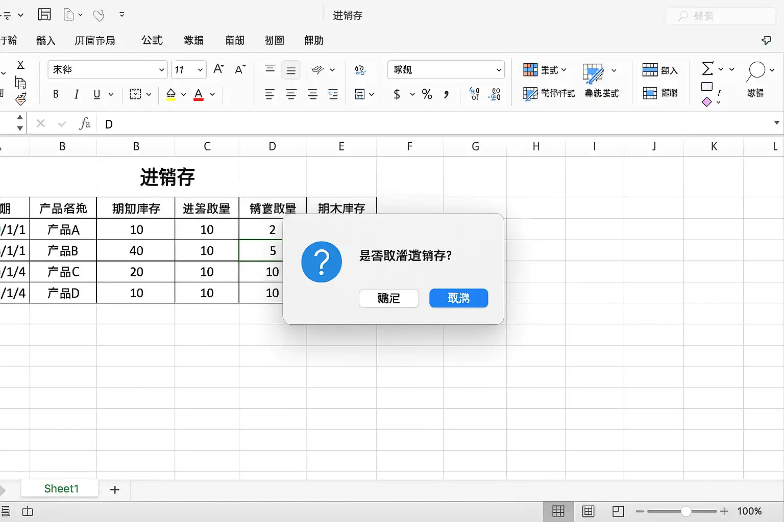 如何取消excel进销存