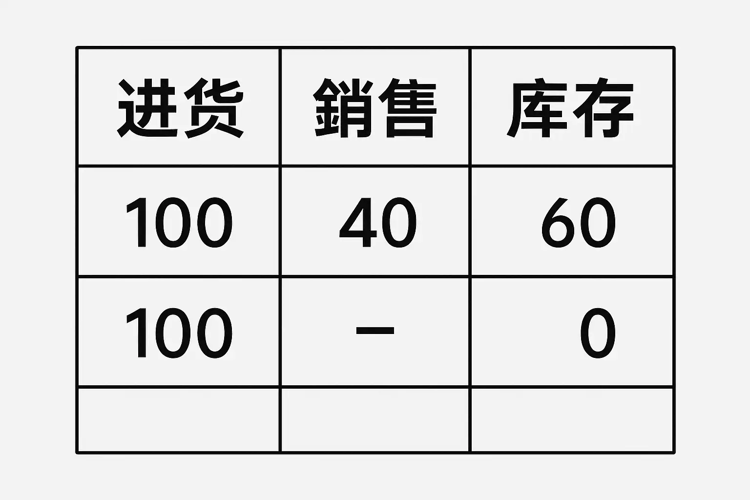 如何通过表格清晰展示进销存数量的相减过程?