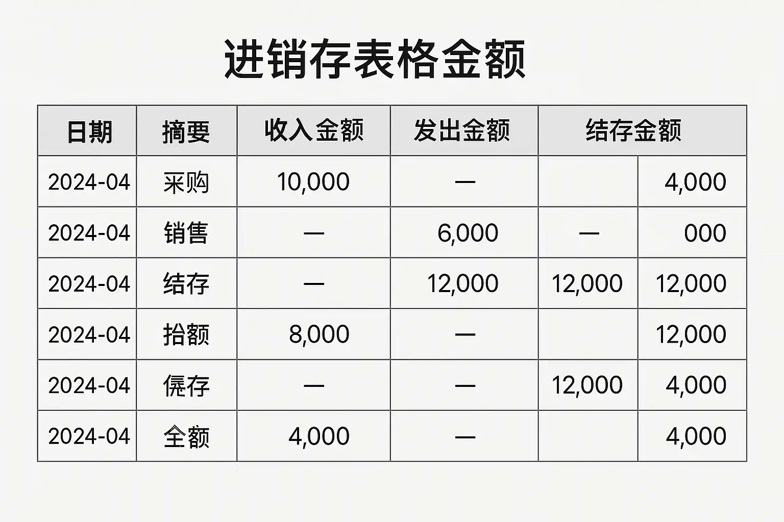 进销存表格金额如何正确填写?