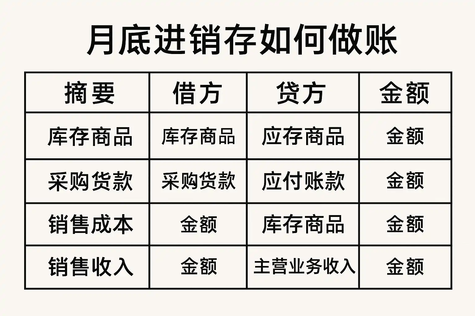 以下以小型贸易公司、大型连锁集团为例,对比其月底进销存做账方式: