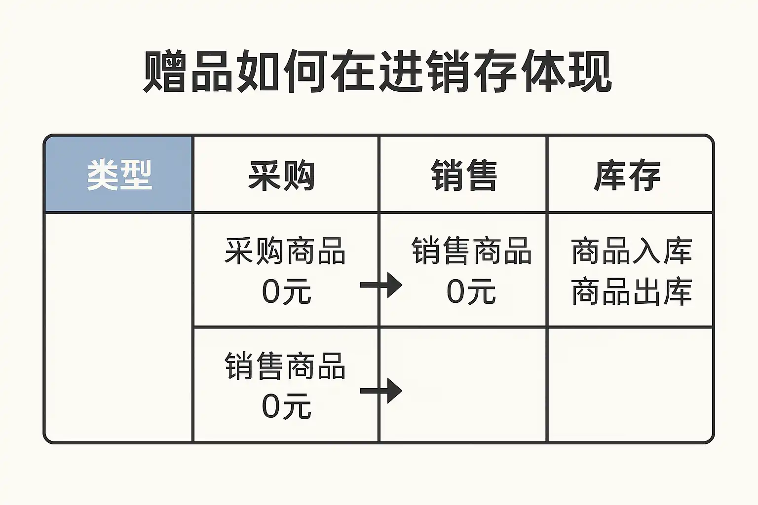 - 成本归属明确:正常商品的采购成本计入库存价值,而赠品视为促销费用,不计入库存成本。