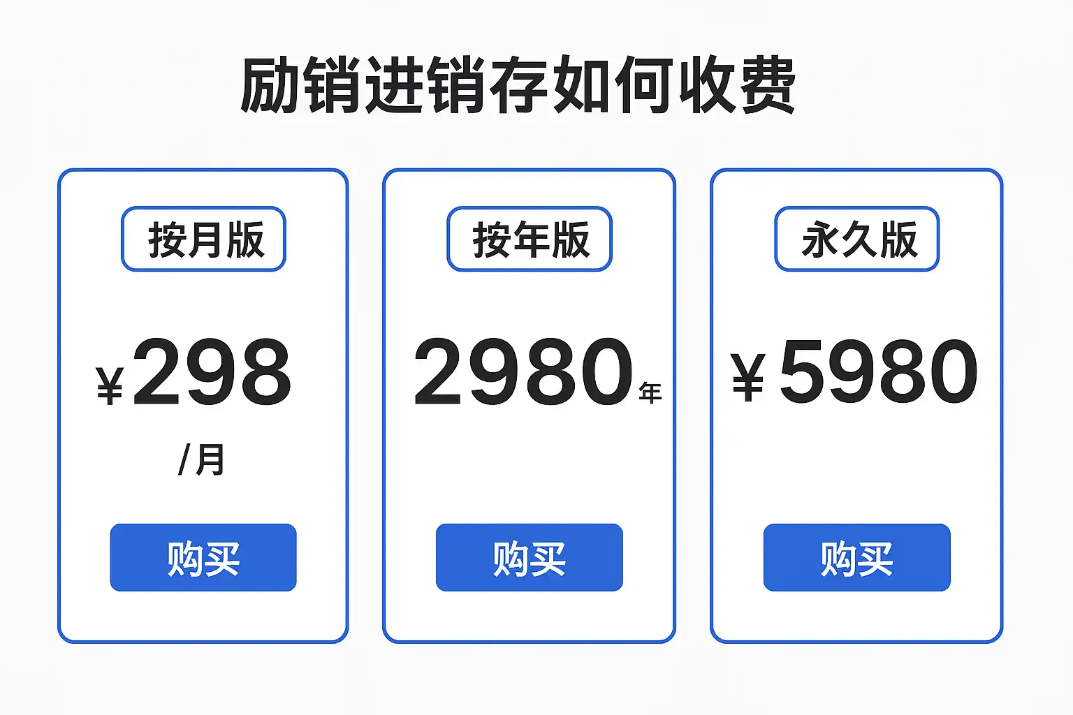励销进销存的收费标准主要分为三种模式: