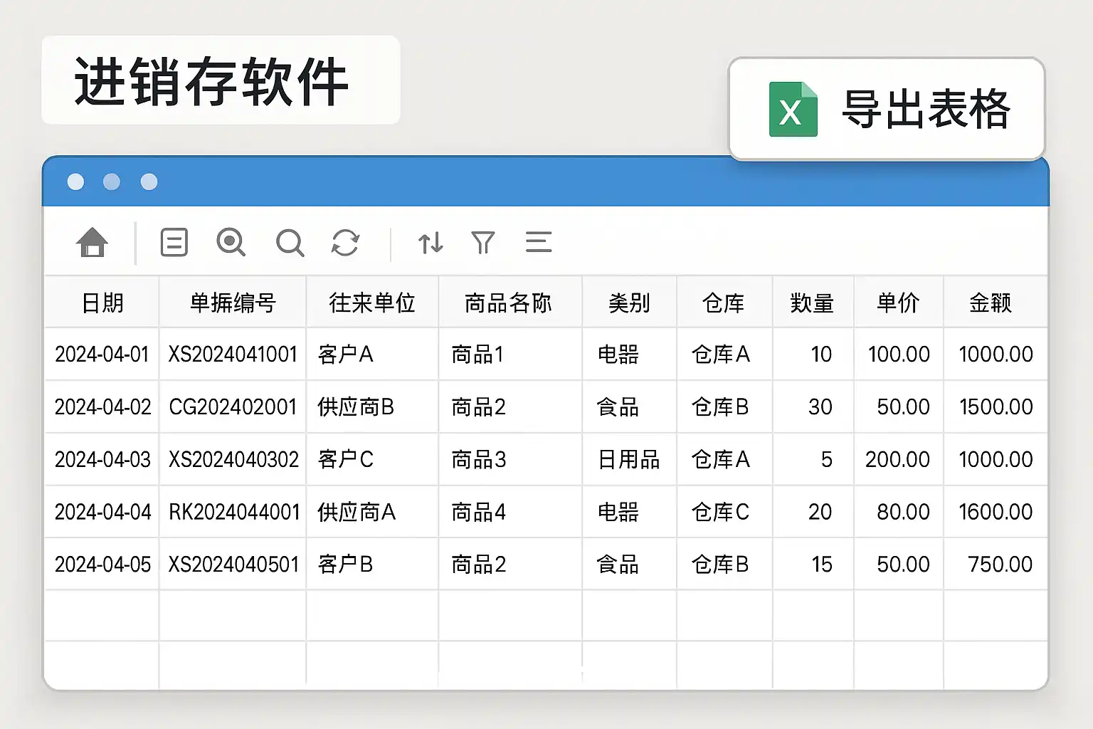 进销存软件中的“导出表格”功能是指将系统内的数据(如采购单、销售单、库存明细等)以电子表格形式输出,方便用户进行二次加工或归档。该功能适用于如下场景: