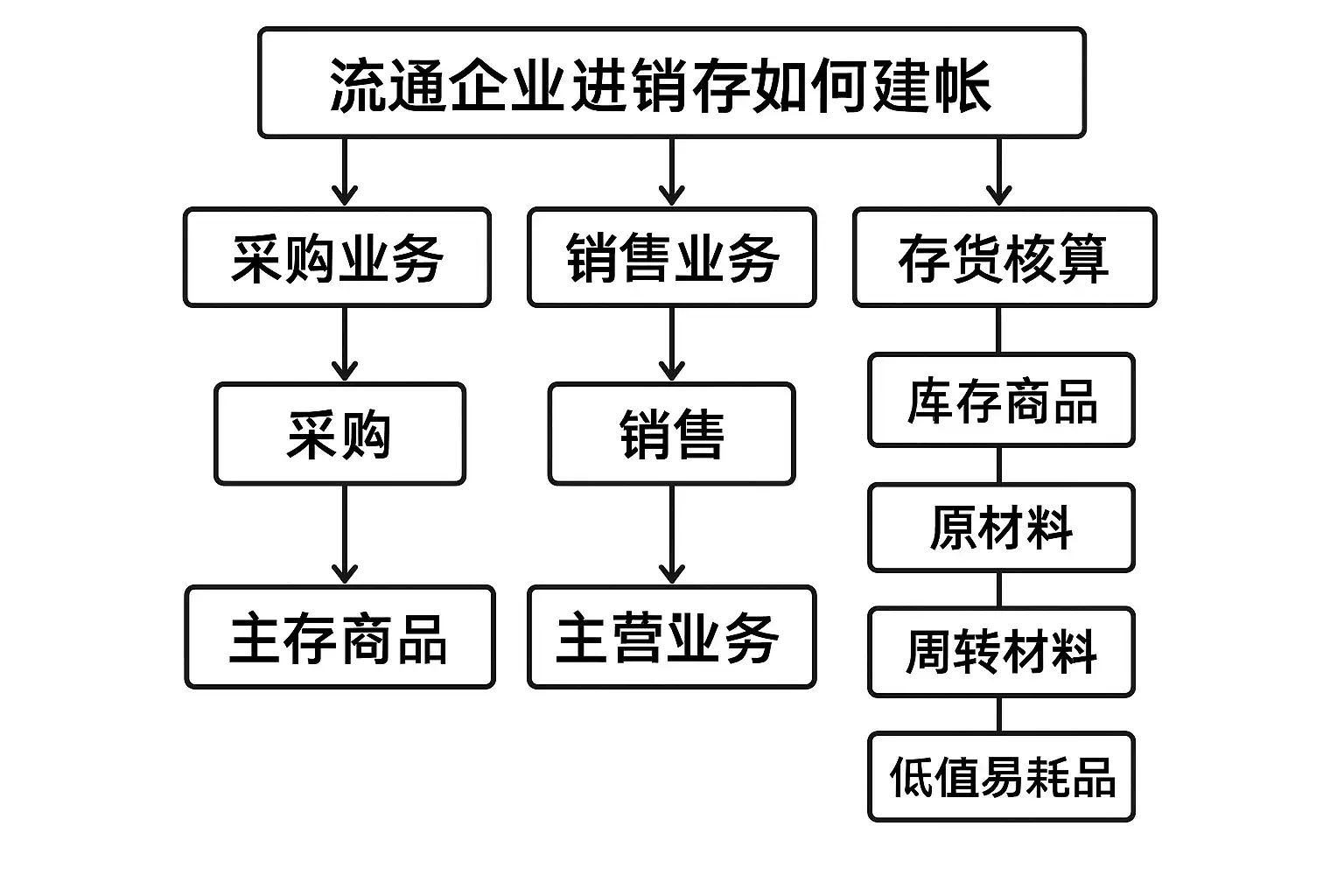 一、明确流通企业进销存建帐的基本流程