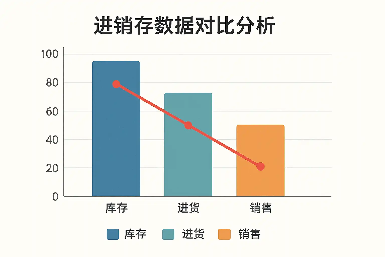 利用结构化表格和图表能够清晰展现进销存关键数据差异:
