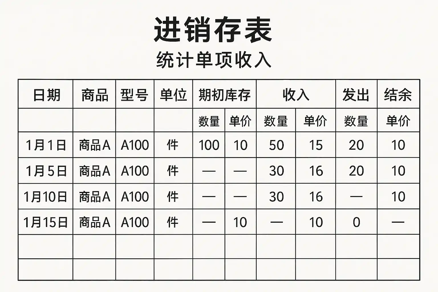 进销存表如何准确统计单项收入?