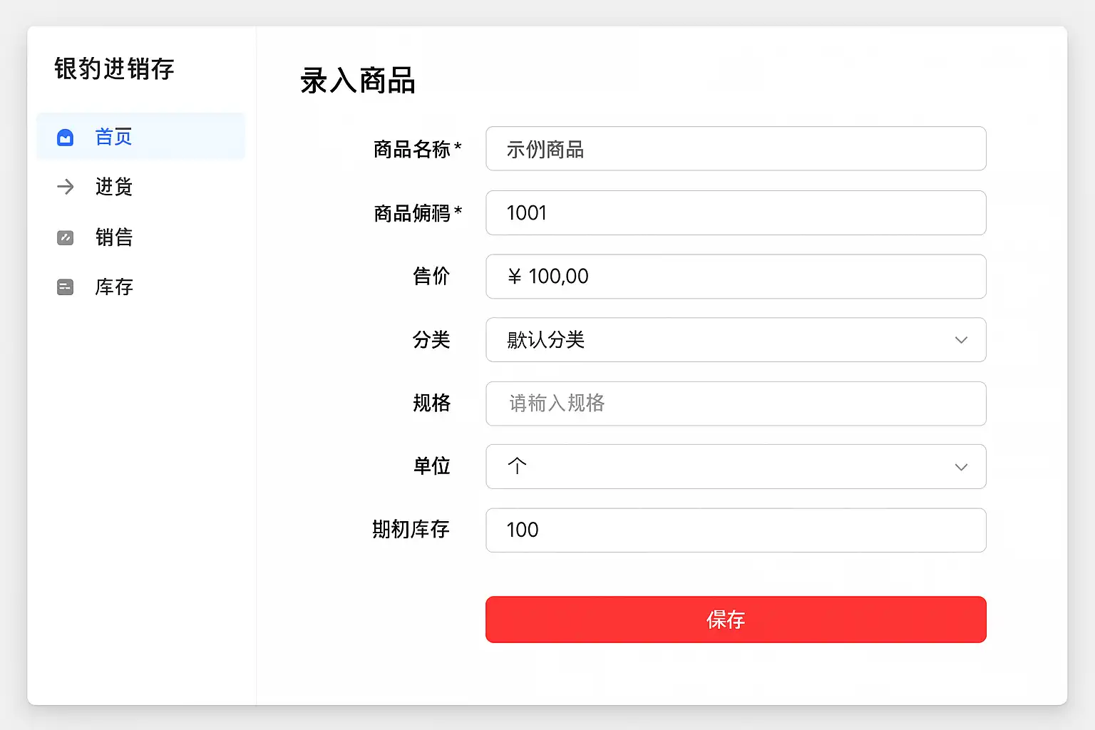 银豹进销存软件录入商品时的必填字段包括: