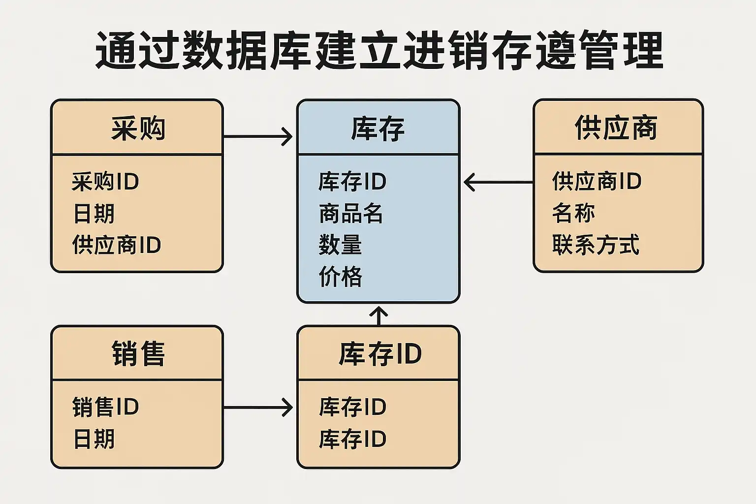 | 采购表 | 采购ID、商品ID、数量 | 记录采购入库 |