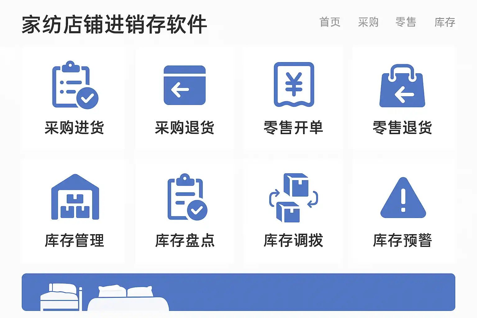 家纺门店面临商品SKU繁多、季节性强、库存周转频繁等特点,因此选择合适的进销存软件至关重要。以下为核心标准: