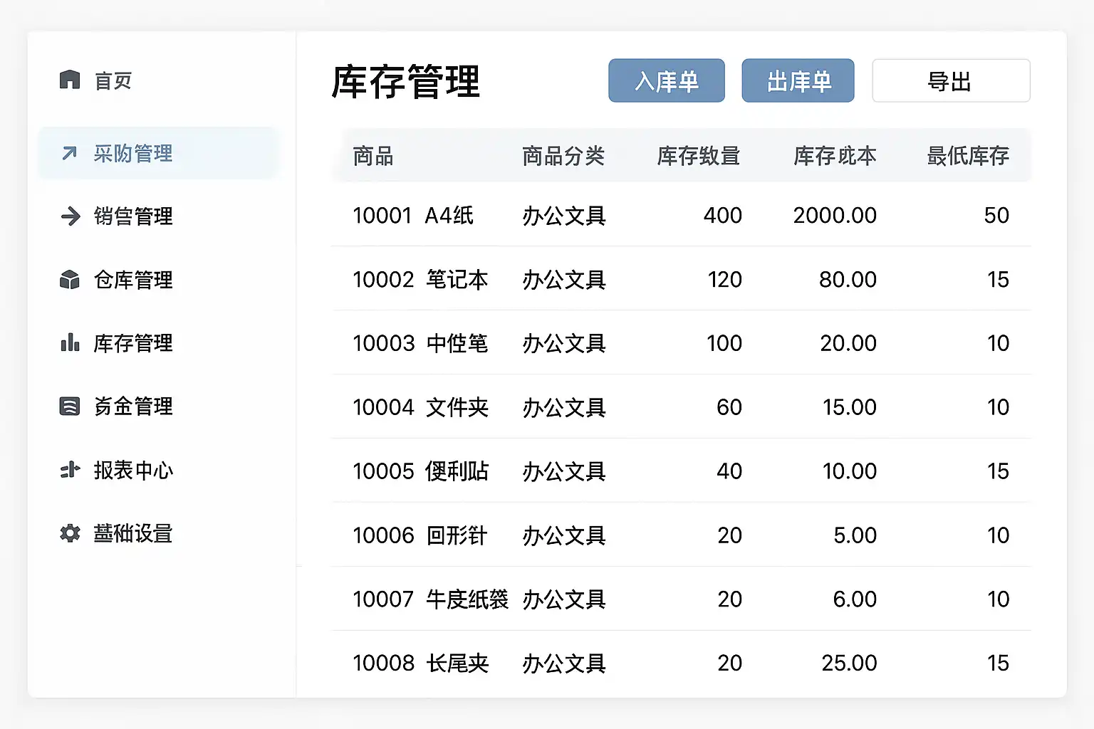 目前市场上几款免费且简单好用的进销存软件包括: