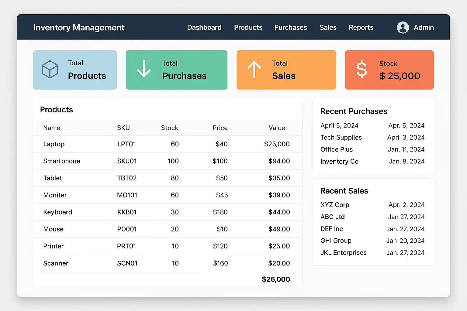 - 可视化仪表盘,采购/销售/库存动态一目了然。