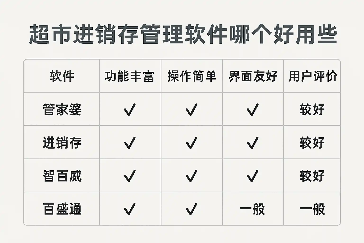 | 管家婆 | 中小企业 | 行业历史悠久,上手快 | 定制化有限 | 单门店或中小连锁 |