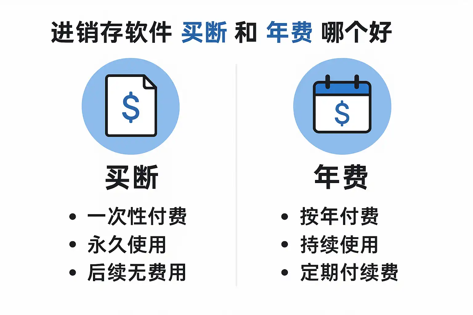 我在选择进销存软件时,看到买断和年费两种付费模式,纠结不知道哪个更划算。想了解这两种模式的优缺点及适用场景,帮我做个清晰对比分析。
