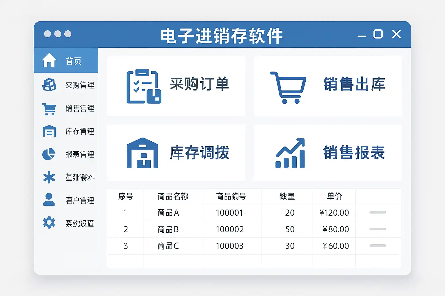 - **功能覆盖:**涵盖采购、销售、库存管理等全流程。