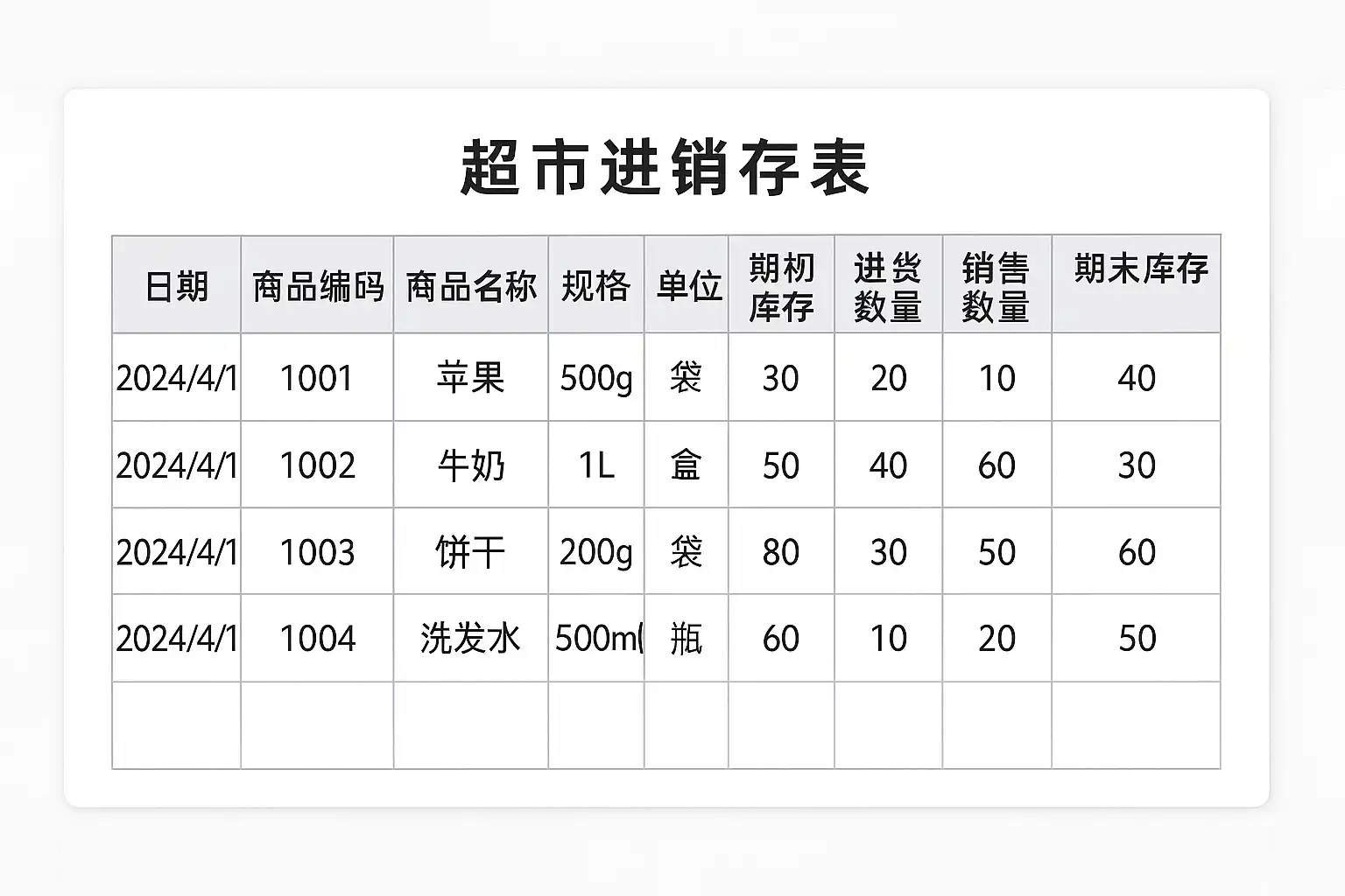 适合超市的进销存表格需要具备哪些核心功能?