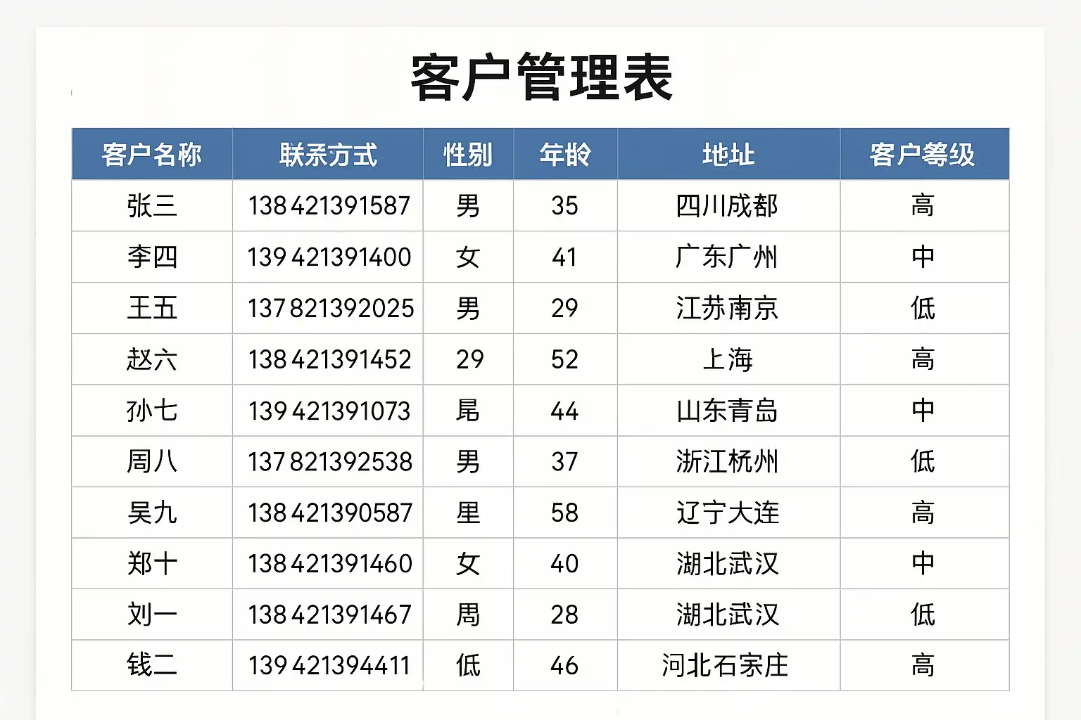 客户管理表是一种用于系统化收集、整理和分析客户相关信息的工具。它可以是电子文档(如Excel),也可以是专业CRM(Customer Relationship Management)软件中的核心模块。无论企业规模大小,有效的客户管理表都能:
