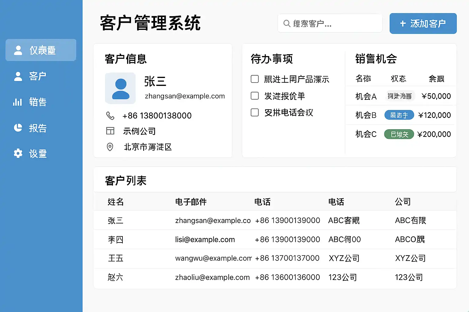- 数据分析与报表:通过数据可视化帮助企业做出科学决策,例如客户分布、销售趋势等。