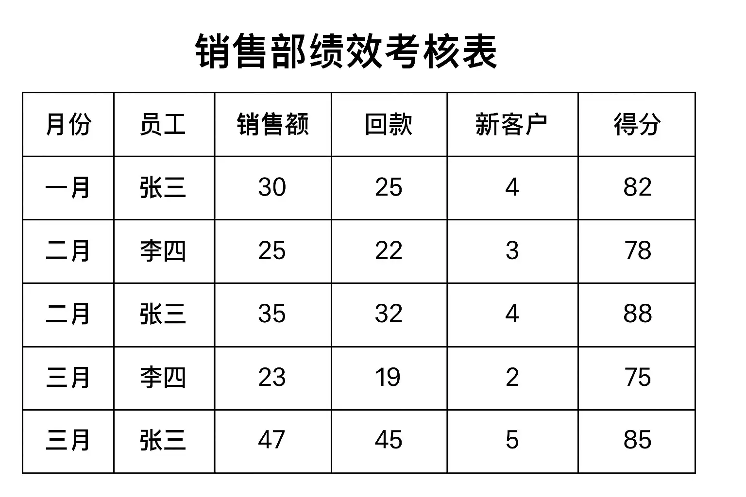 销售部绩效考核表