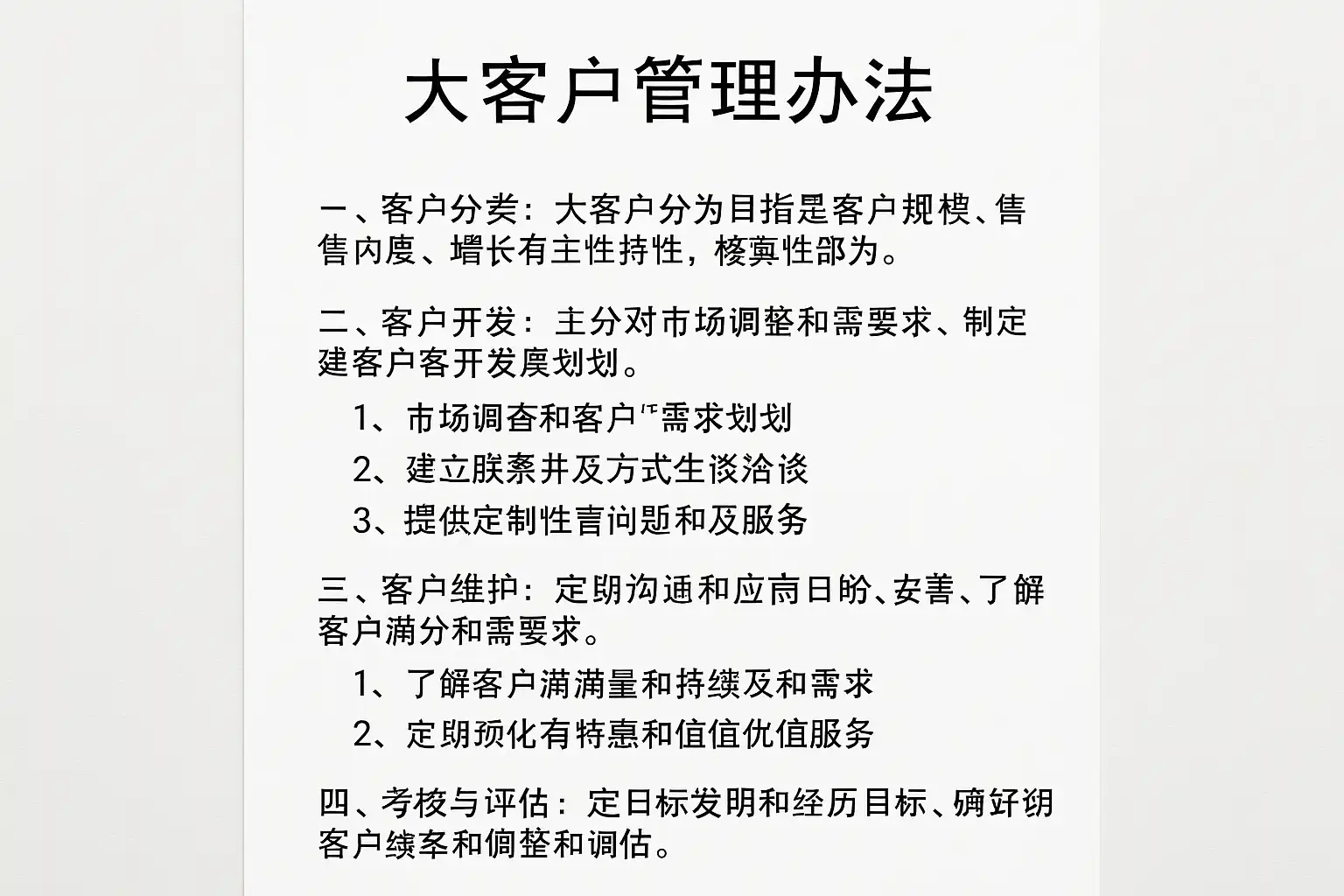 制定有效的大客戶管理办法时,应重点关注以下关键点: