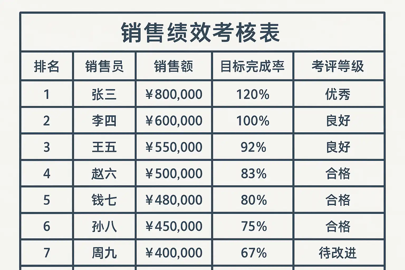 七、完整示例——标准版销售绩效考核表示范模板(可下载自定义编辑)