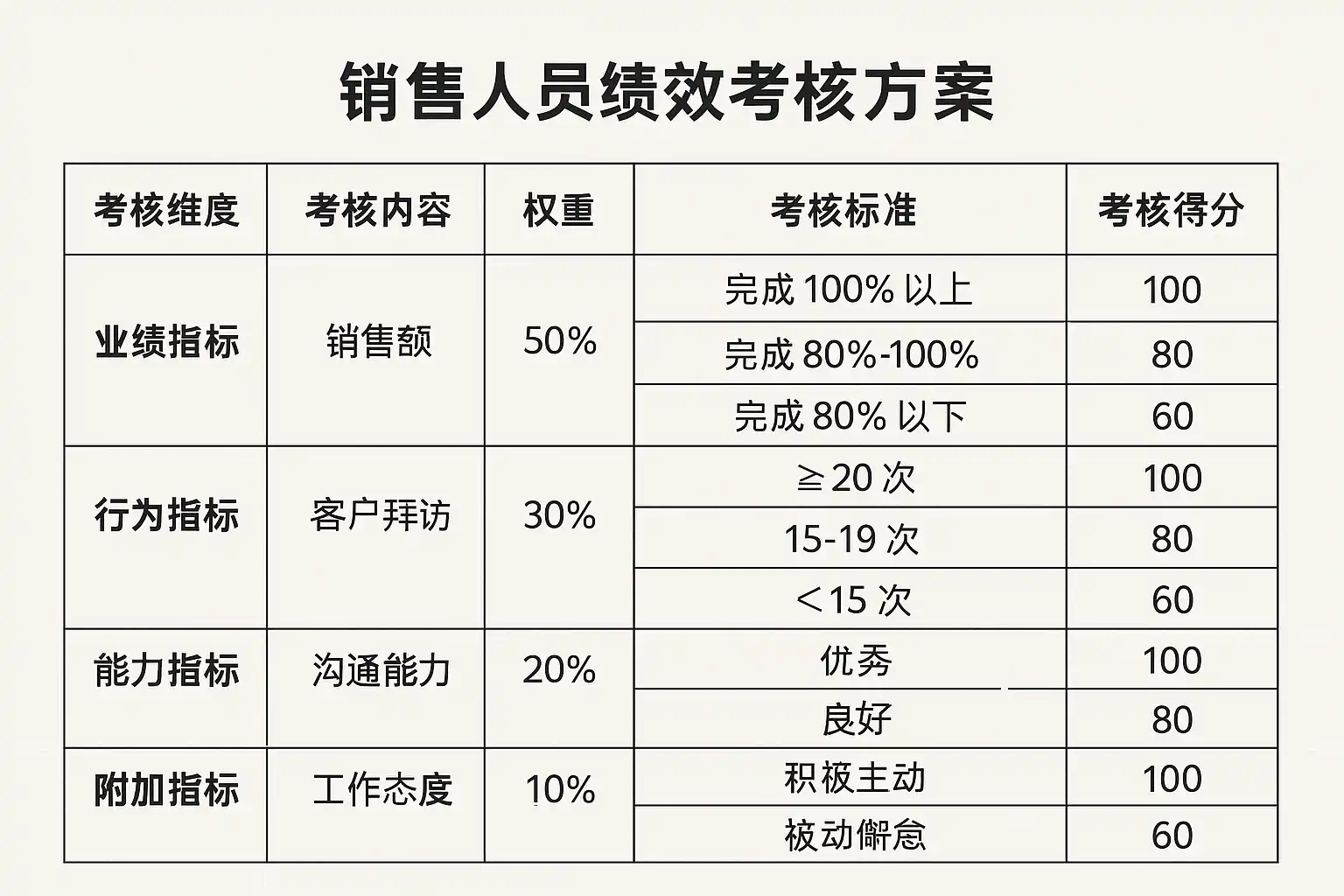 销售人员绩效考核方案表格详解,如何制定有效的考核标准?