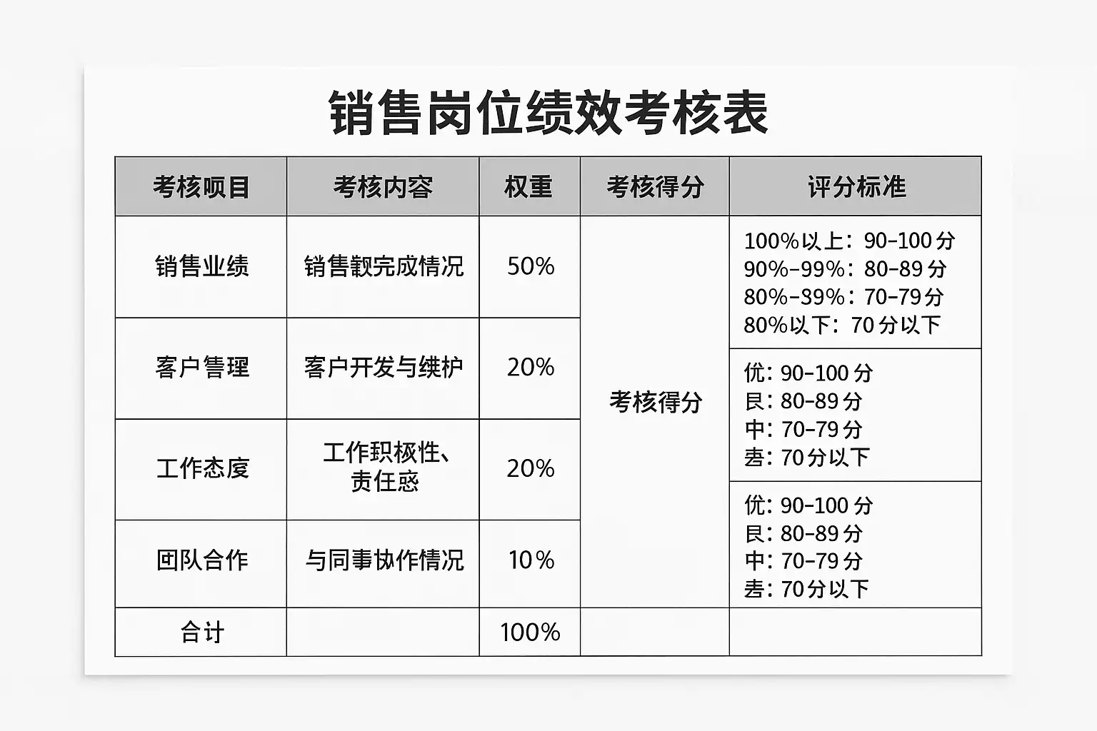 销售岗位绩效考核表详解,如何提高团队业绩?