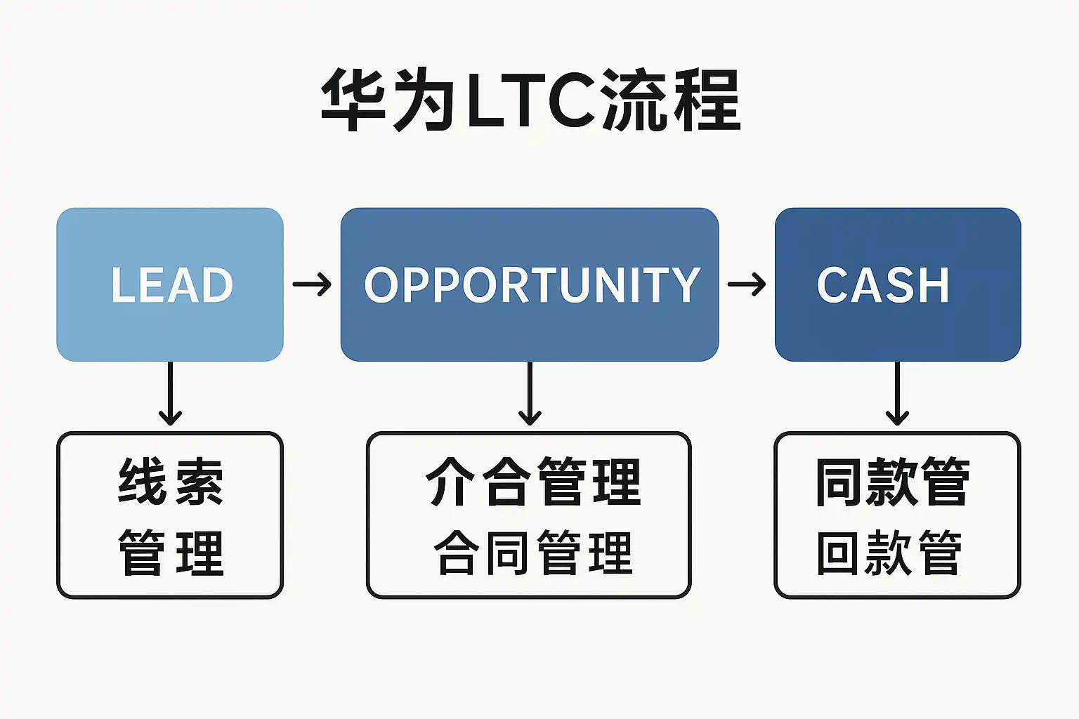 LTC(Lead to Cash)流程,是现代大型企业销售及业务管理中的重要框架。它涵盖了从客户需求识别(线索/商机产生)到获得订单执行,再到最终回款的全过程。该模式最初由欧美大型科技公司推广应用,华为作为全球领先的信息与通信技术供应商,将其引入自身运营体系,实现了对复杂项目型业务的精细化管理。
