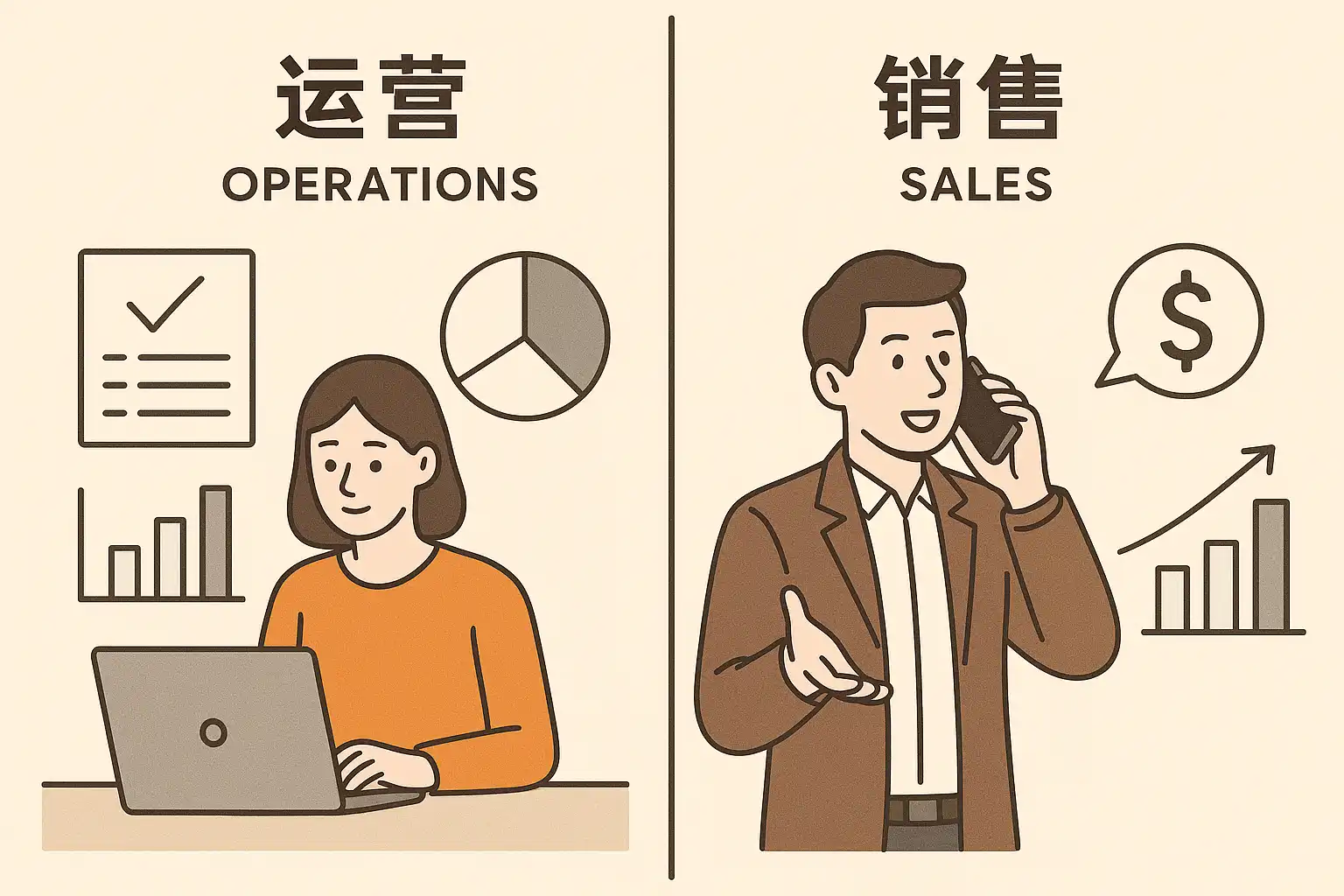 我一直在思考运营和销售这两个岗位的差异,感觉两者职责有交集,但具体核心区别在哪里呢?想了解它们分别关注的重点和目标有什么不同。