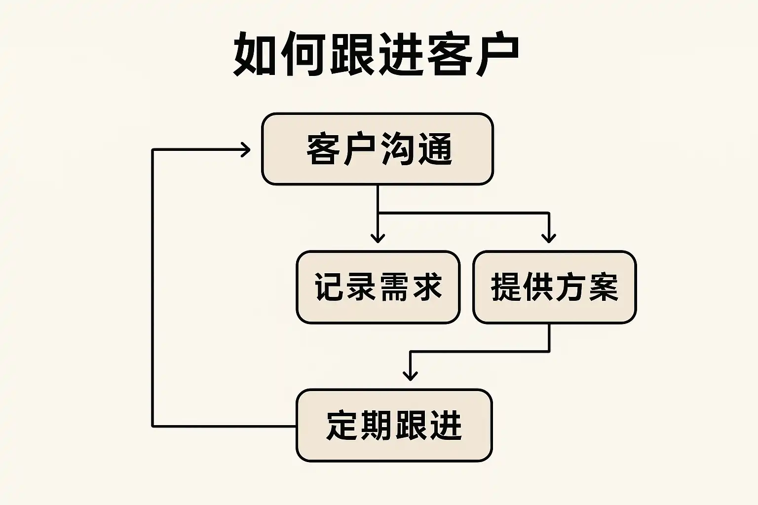 - 明确跟进节奏(如首次联系后,1天内回访;3天内发送方案)