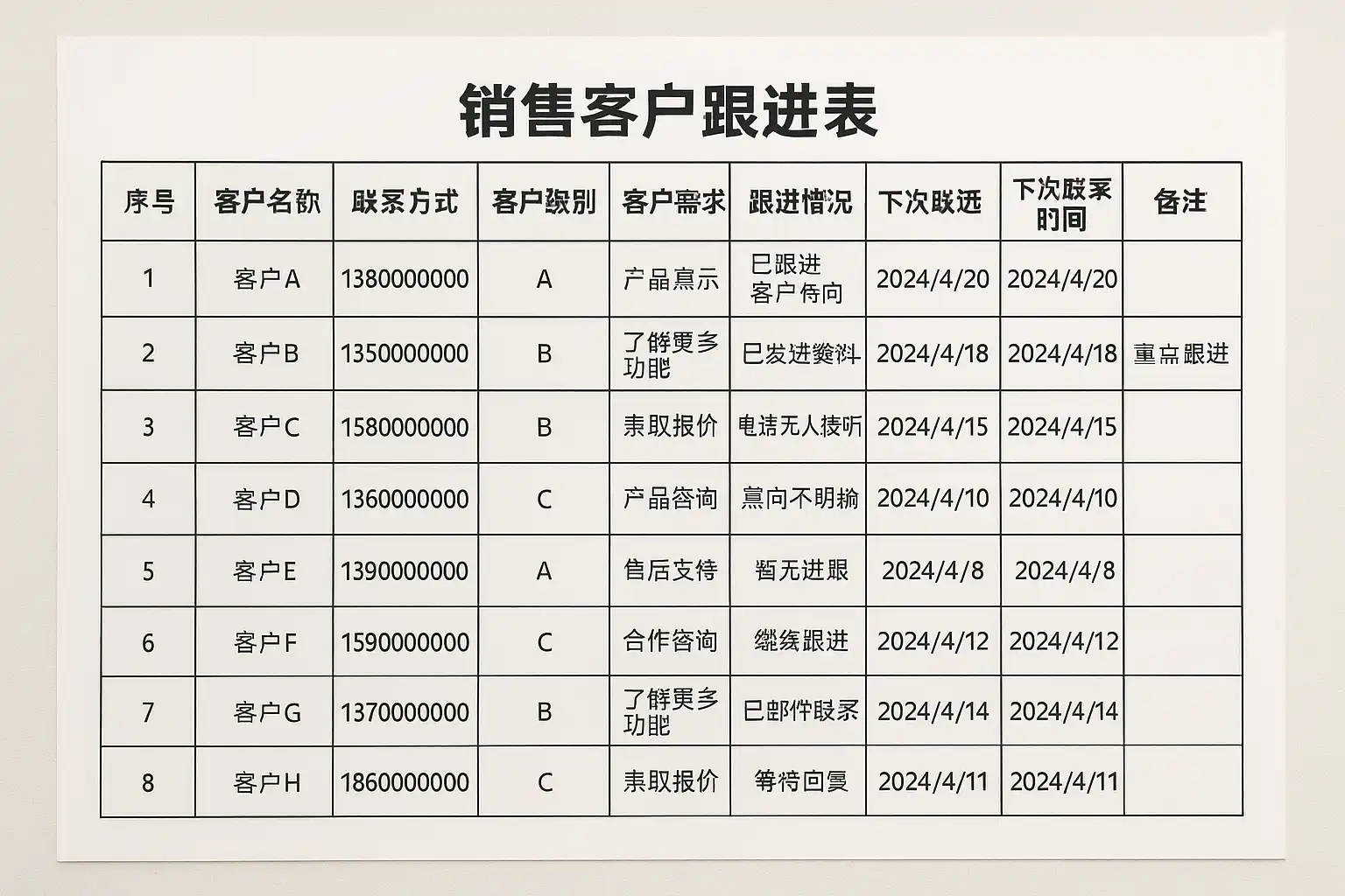 如何设计一份高效的销售客户跟进表?有哪些关键字段必不可少?