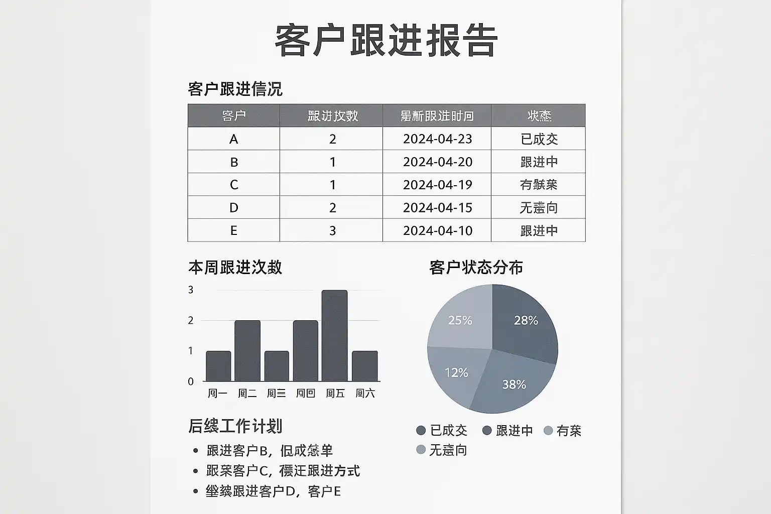 一份完整、高质量的客户跟进报告通常包括以下结构: