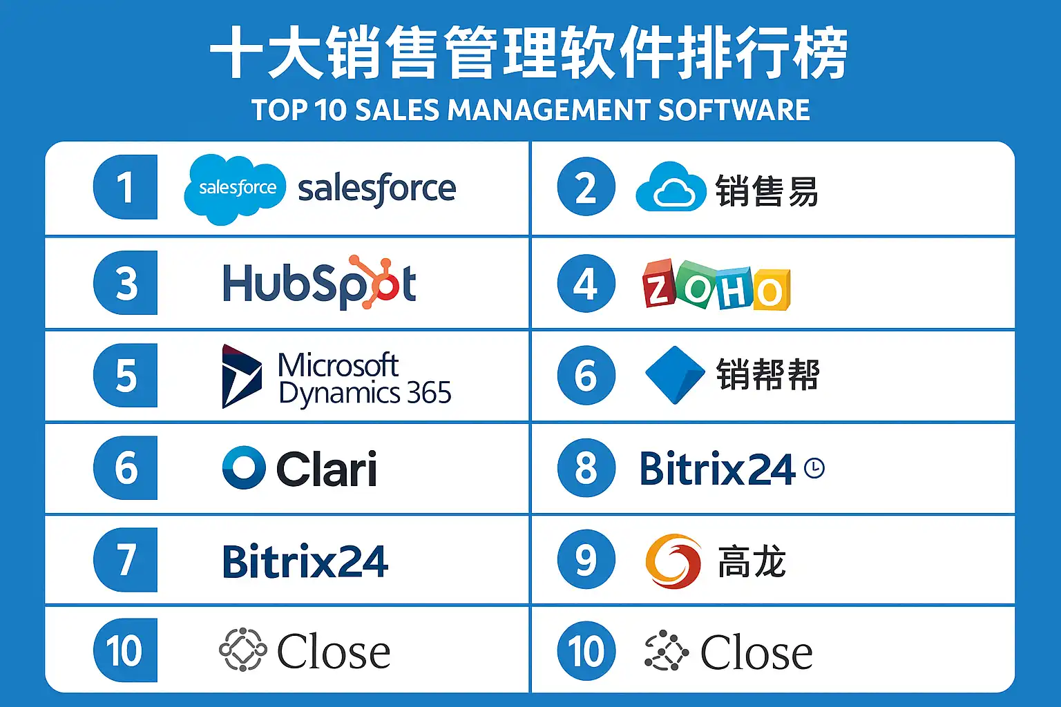 当前市场上主流的销售管理软件各具特色,下表对比了十大热门CRM系统在核心功能上的表现: