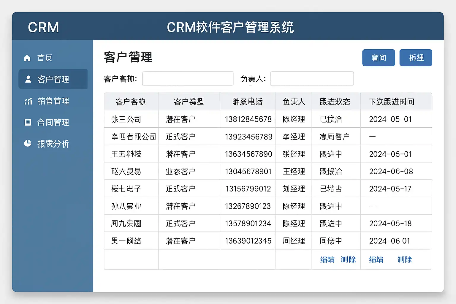 CRM(Customer Relationship Management)软件,即客户关系管理系统,是一种帮助企业实现对潜在和现有客户全生命周期精细化管理的信息化工具。该类型系统通常具备如下核心功能: