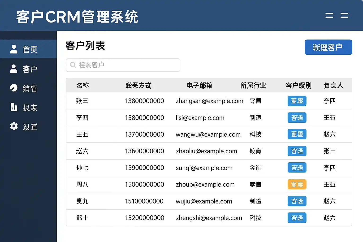 | 客户资料管理 | 集中录入、查询、分组和编辑所有潜在/现有/历史客户信息 |