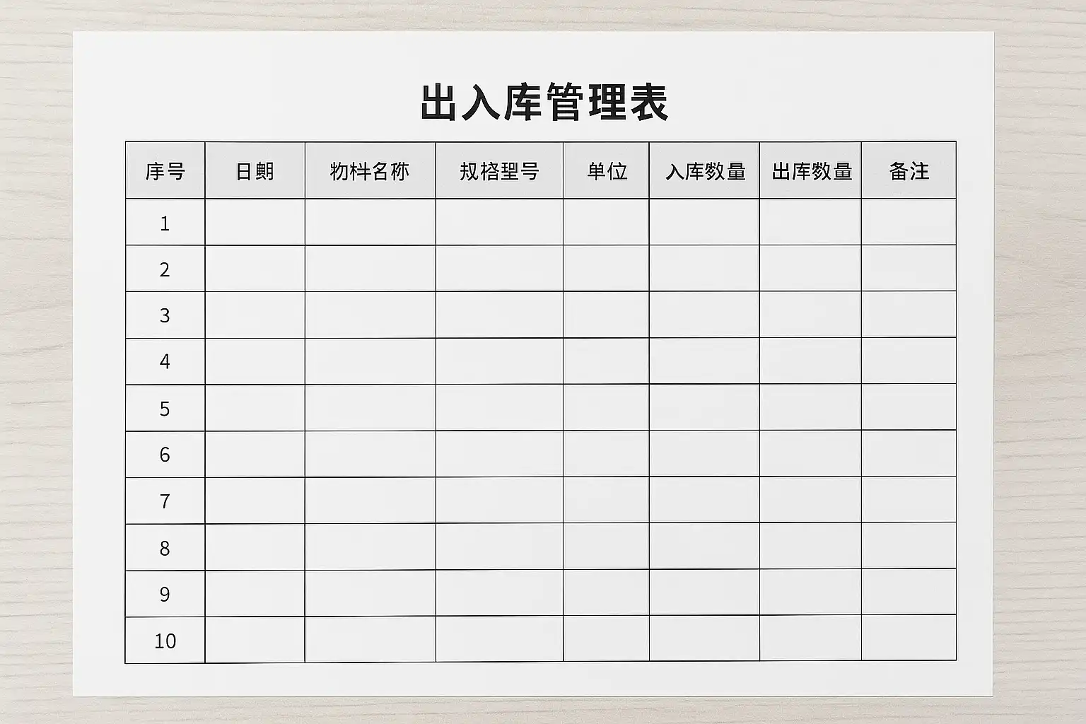 高效的出入库管理表应包含以下关键字段:
