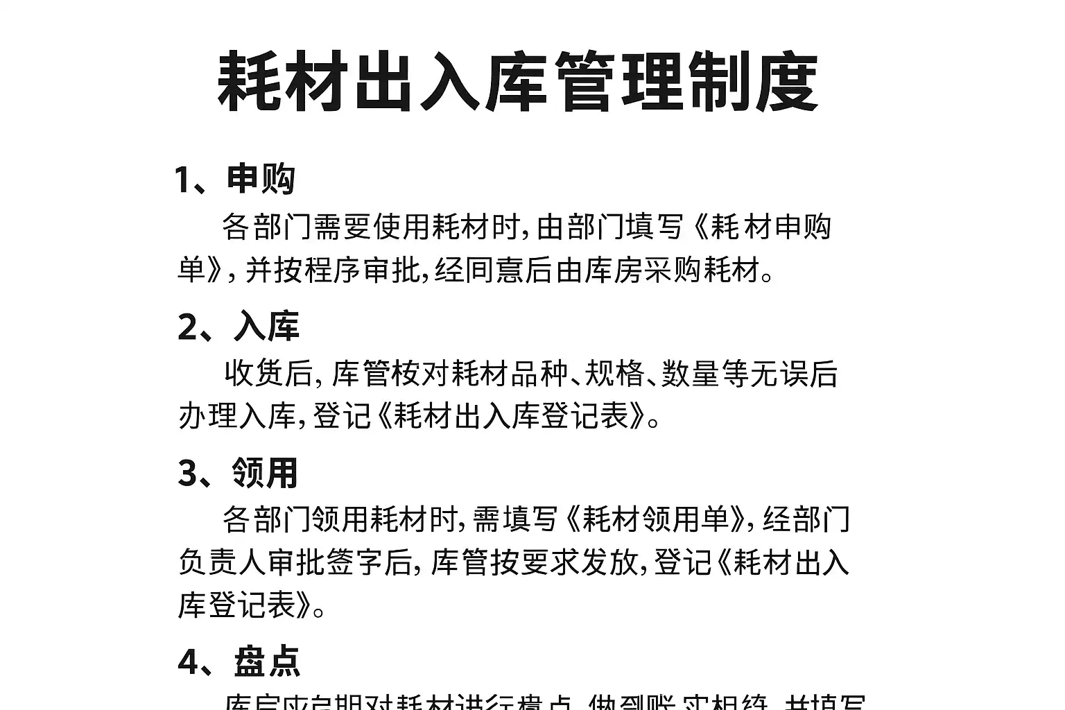 作为公司仓库管理员,我常常困惑耗材出入库管理制度具体包含哪些内容,如何科学制定这套制度以保障库存准确和使用效率?