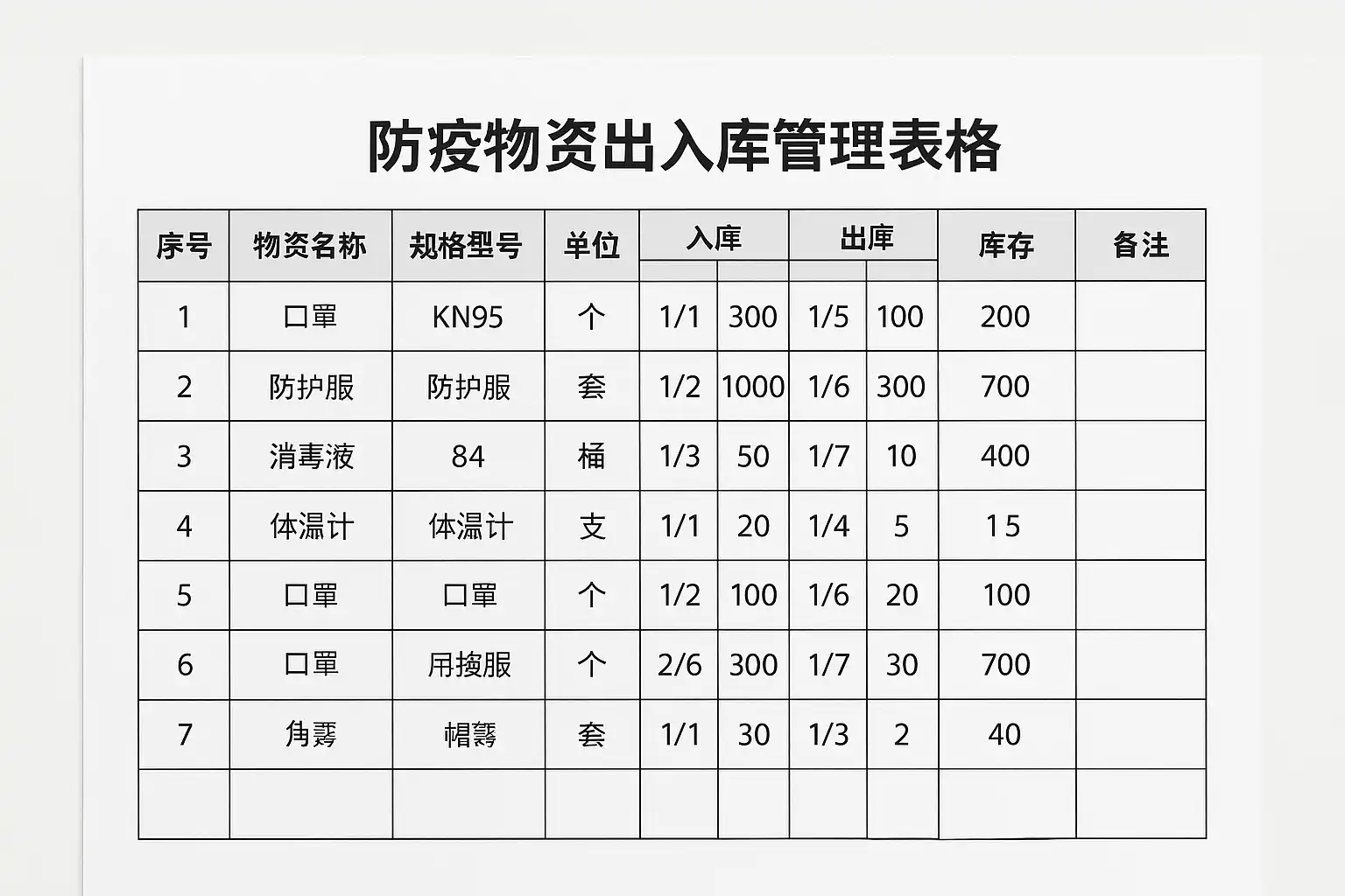 使用规范的防疫物资出入库管理表格,可以通过以下几方面提升库存准确率:
