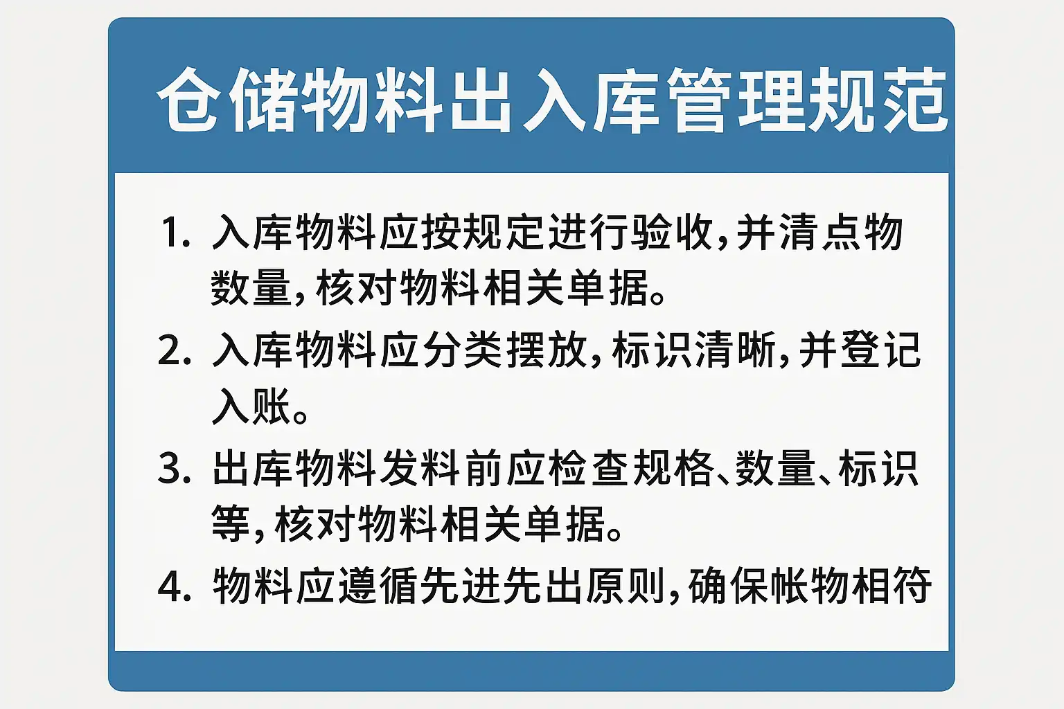 为确保每一项物料进出活动有据可依、防止疏漏或舞弊,需要制定并落实以下标准化流程: