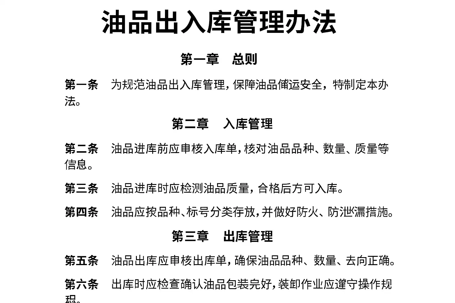 油品出入库管理办法