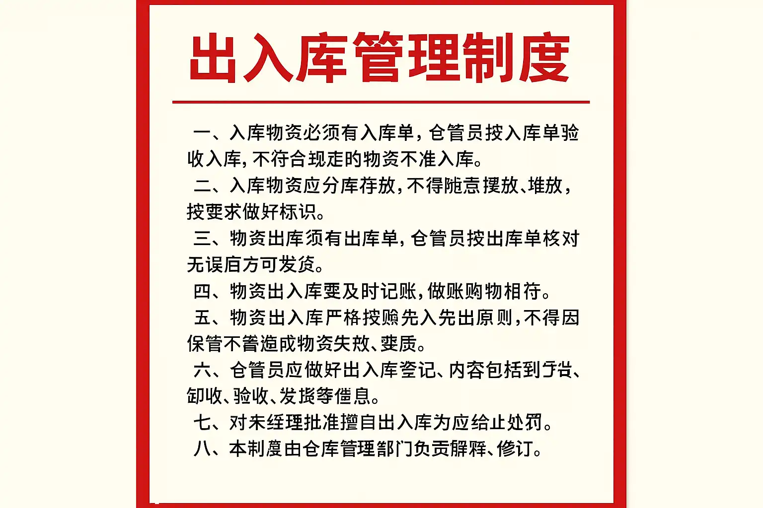 对于现代企业而言,科学合理的出入库管理制度是仓储运营高效、安全、有序的重要保障。具体包含以下几个方面: