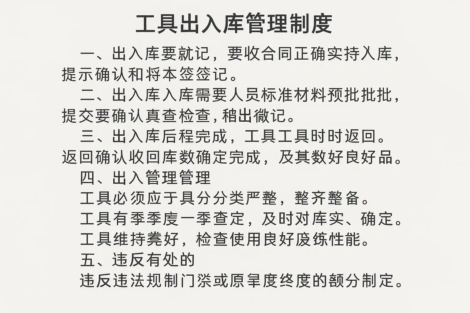工具出入库管理制度主要涵盖以下核心内容: