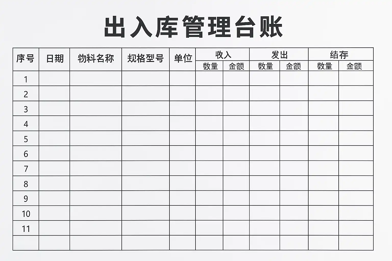 - 数量变化明确:分别记录“入”“出”“结余”