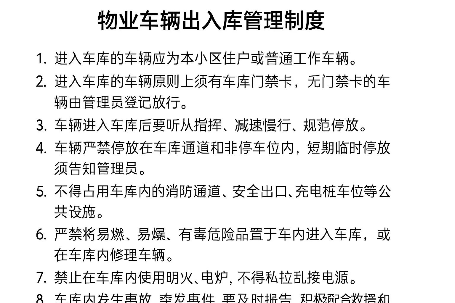 制定合理的物业车辆出入库管理制度时,应重点关注以下关键点: