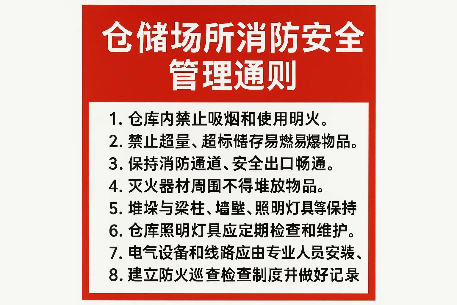 仓储场所消防安全管理通则主要涵盖以下核心内容: