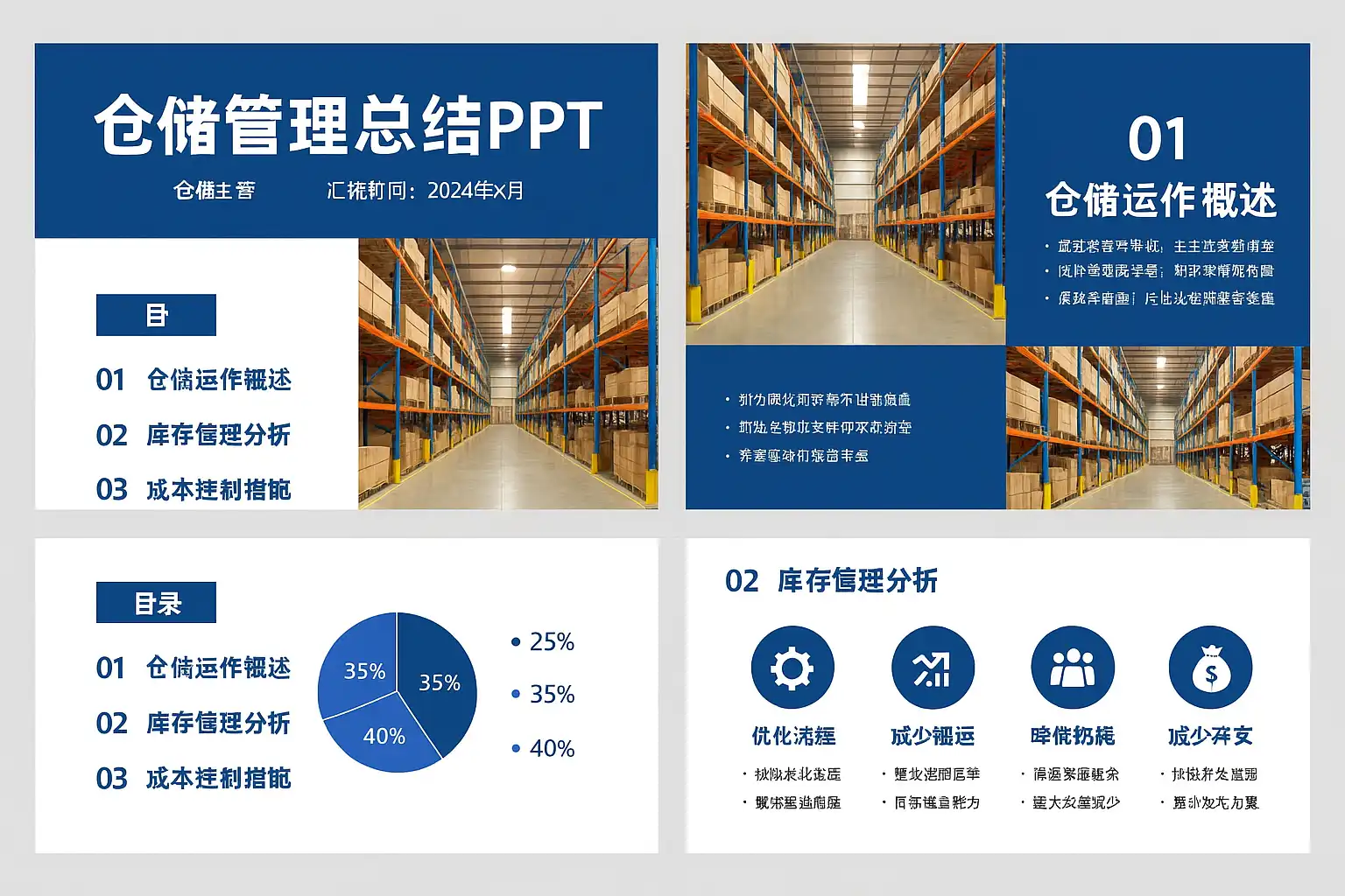 一个高效的仓储管理总结PPT通常包含以下几个关键结构板块: