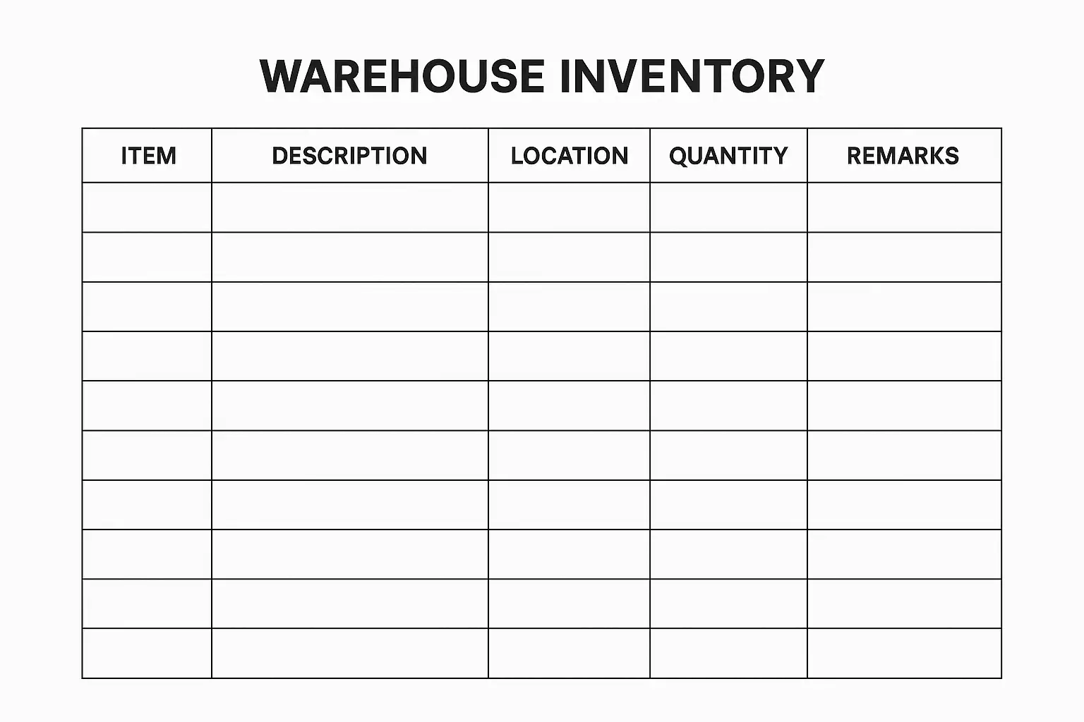 一个标准的仓库盘点表格模板通常包括以下必备栏目: