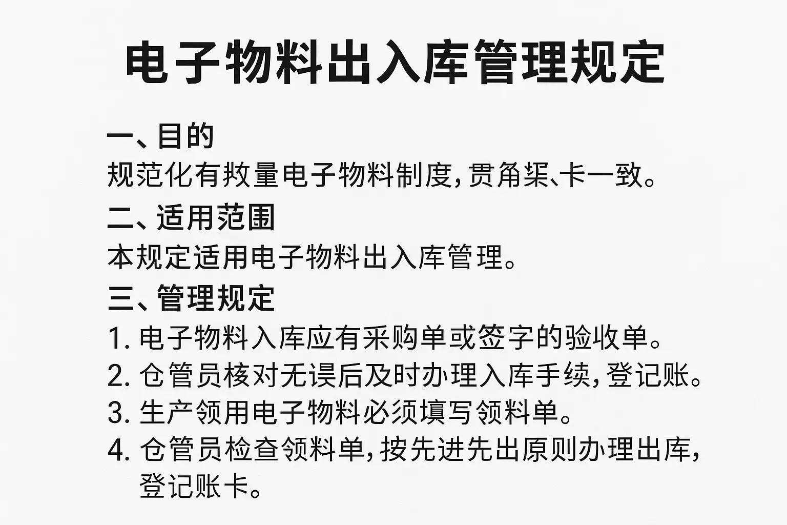 电子物料出入库管理规定主要涵盖以下核心内容: